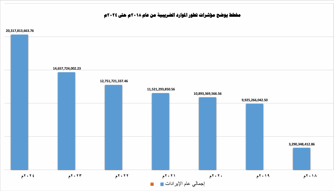 - نمو فى الإيرادات الضريبية بشكل ملحوظ والشكل السابق يوضح التطوير التدريجي للايرادات الضربية المحصلةخلال الاعوام 2018 -- 2024 .